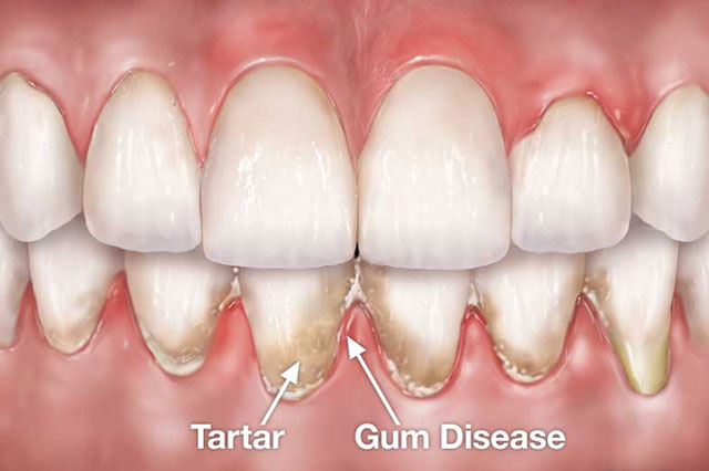 Gum disease is caused by toxins secreted by bacteria in "plaque" that accumulate over time along the gum line. This plaque is a mixture of food, saliva, and bacteria.