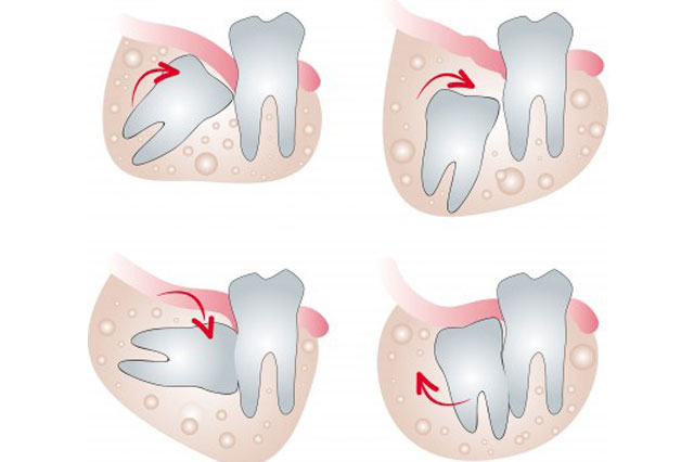 Each individual wisdom tooth is unique and depending on how it grows, it can have different impact on bones and/or tissues. Their varied developments such as impaction, horizontal or slant placement may effect other teeth and cause troubles. They have to extracted out and is a highly skillful job being performed by our Maxillofacial surgeon. The following 4 impactions are commonly found in patients cases.If the impaction is between the third molar and part of the second molar, this kind is called bone impaction. It can subcategorized into vertical, horizontal, and angular depending on the way they are intersecting.